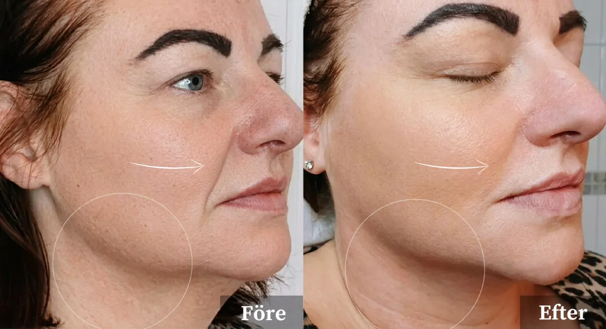 Detta skapar en naturlig lyfteffekt samtidigt som hudton, struktur och lyster förbättras – helt utan nålar eller kirurgi.